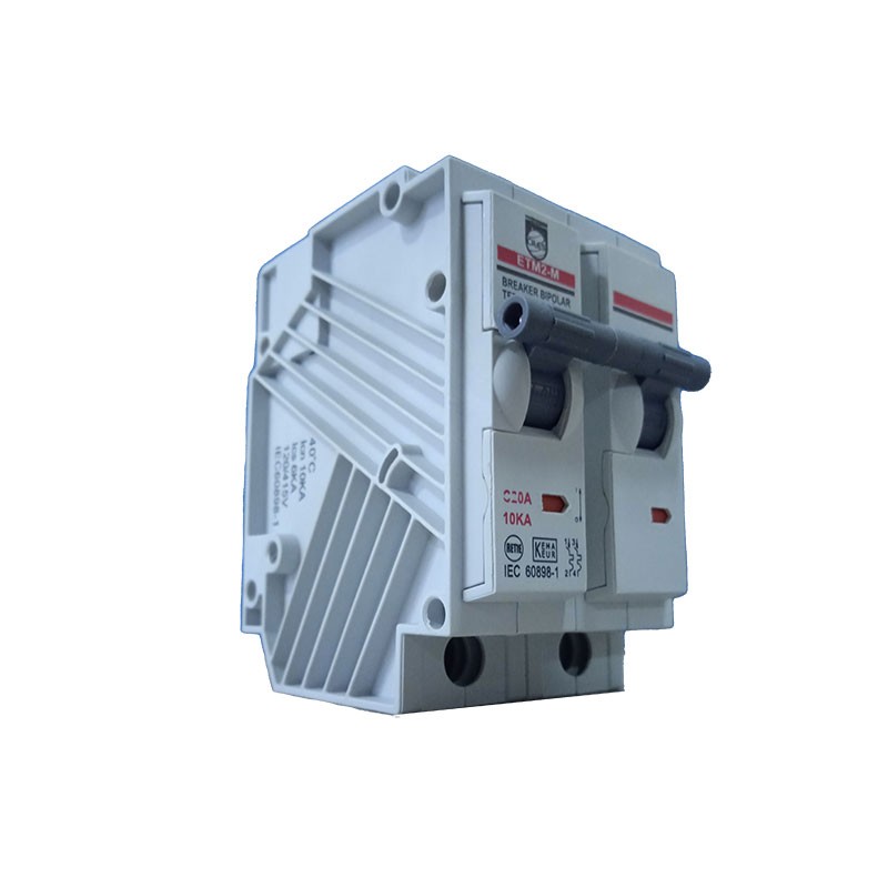 Breaker Enchufable Bipolar 2 X 20 AMP 6/10 KA Terminal Cobre Proteccion Termomagnetica PT349313